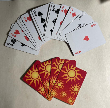 Itty bitty playing cards! They're so small. It doesn't show up on the picture but they're so small. They appeared in the road outside my old school one day and my friend and I were late to class scrambling to pick them all up. I've never counted to check if they're a full set.